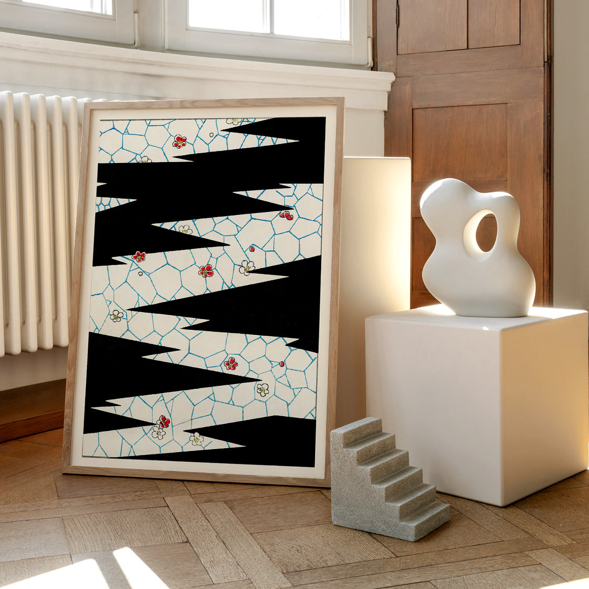 Shin Bijutsukai Flowers: Et detaljerigt blomsterdesign fra det japanske kunstmagasin Shin Bijutsukai, der blev udgivet i begyndelsen af 1900-tallet. Plakaten kombinerer traditionel japansk æstetik med en næsten moderne sans for komposition og farve. Perfekt til dig, der ønsker et kunstnerisk og sofistikeret udtryk på væggen.