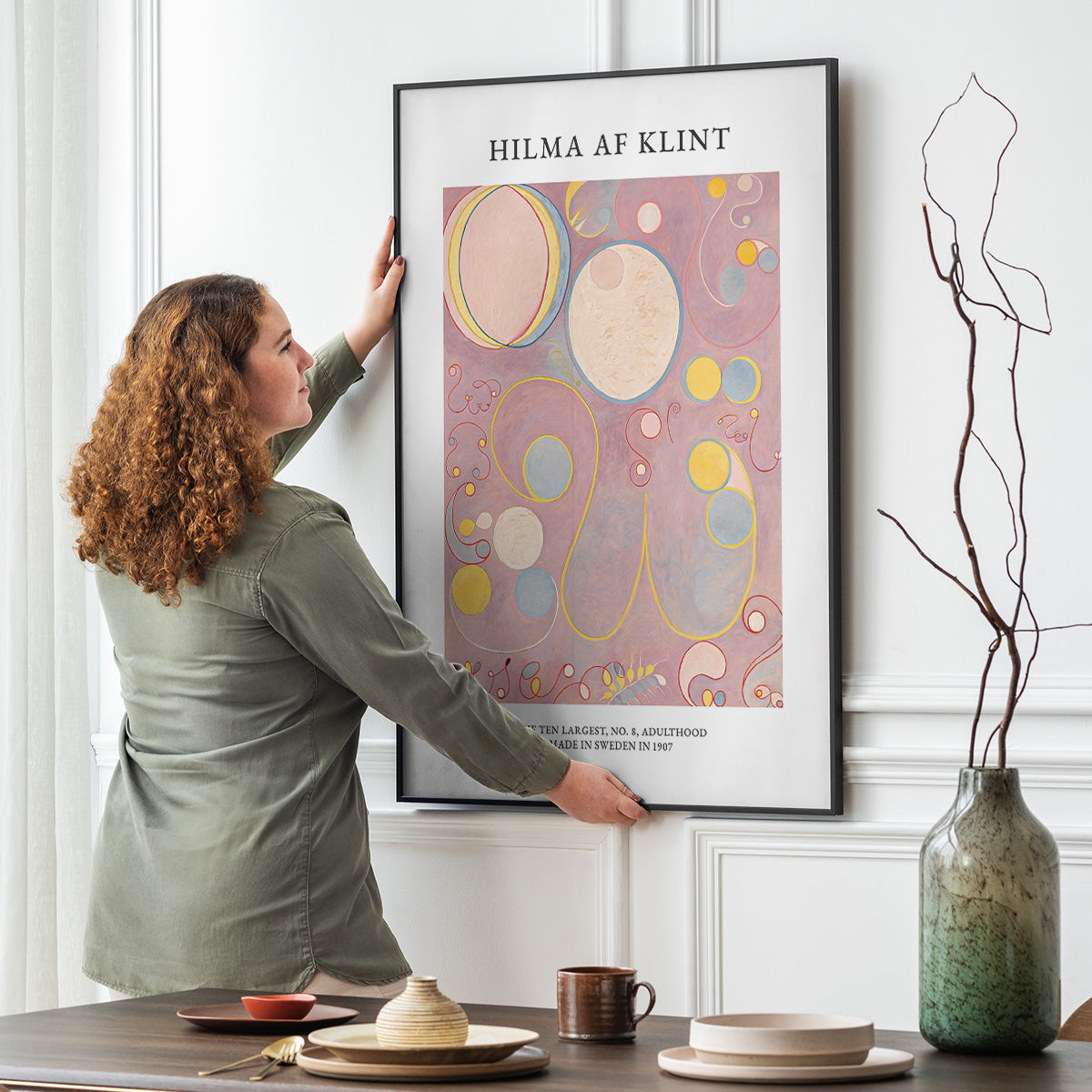 Er du til smukke kunst- og museumplakater? Så er du landet det helt rigtige sted. Hilma af Klint The Ten Largest, Adulthood No8 falder netop ned i den kategori. Abstrakt og interessant værk af den dygtige og lidt mystiske kvindelige kunstner Hilma af Klint.