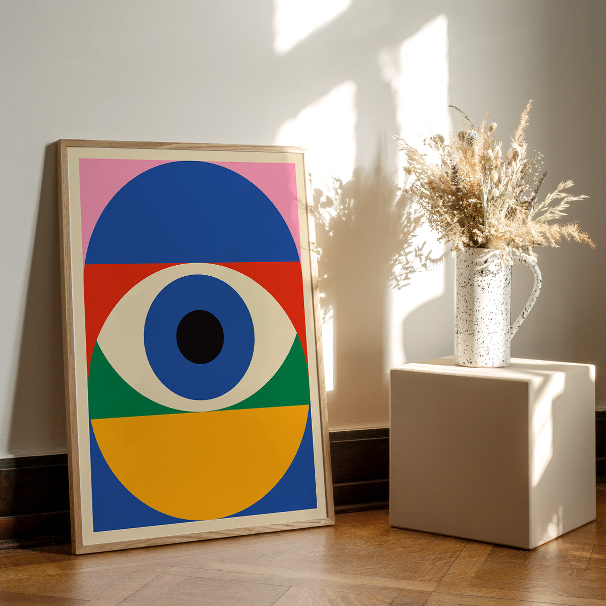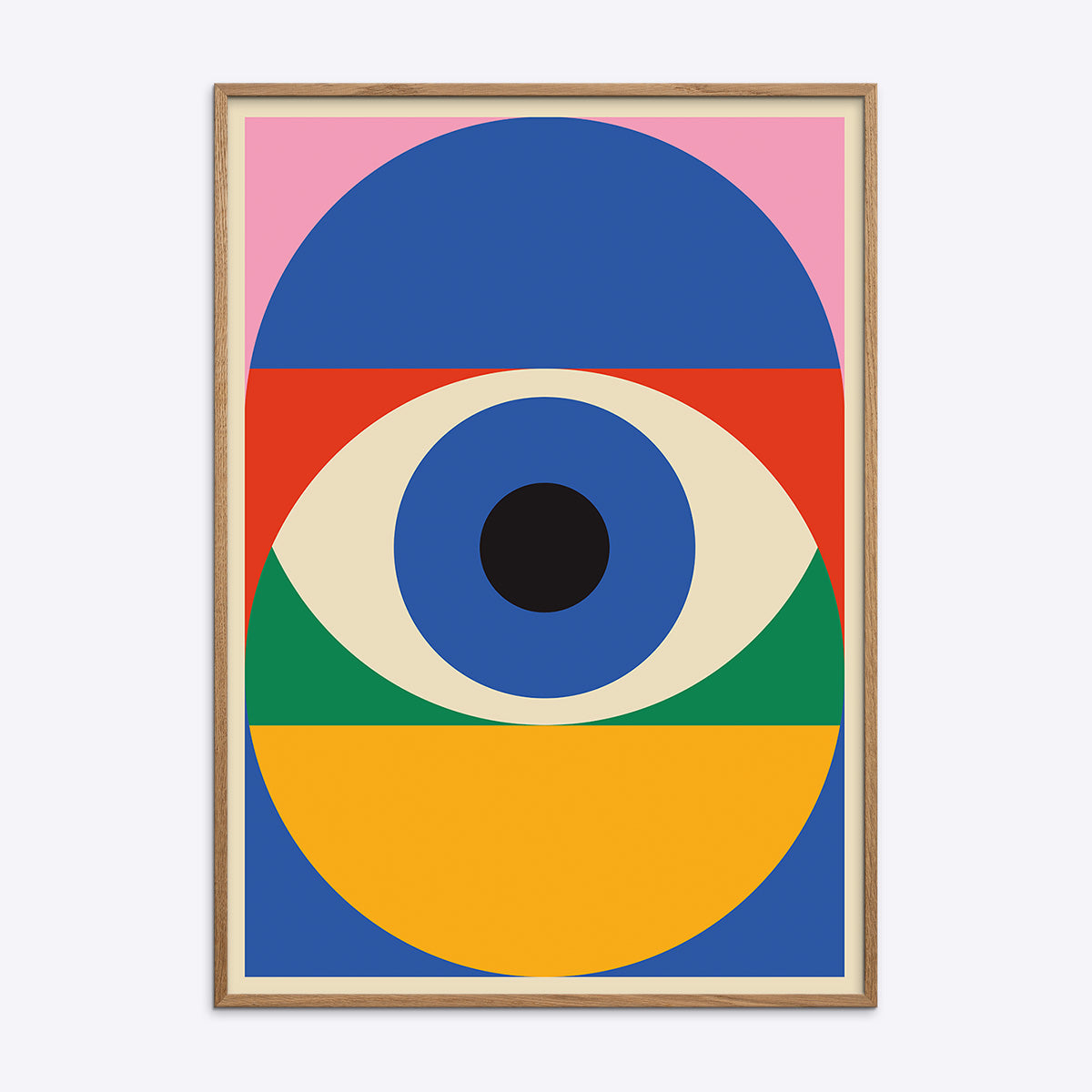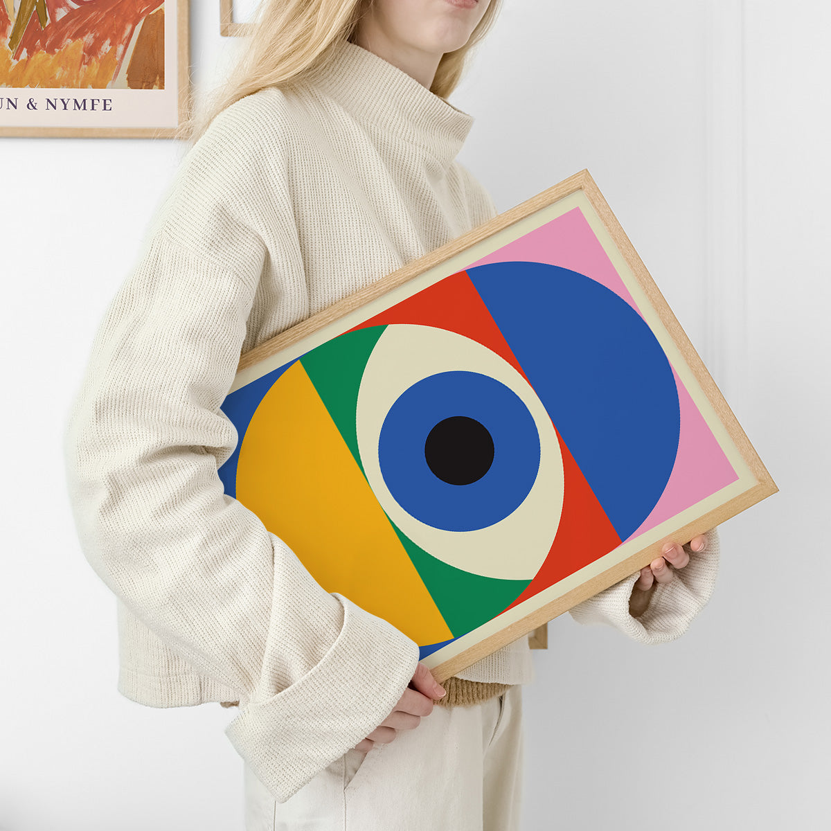Bauhaus Plakat Pink 008-plakaten primære blå farve, kombineret med gul, blå, pink og grøn giver en perfekt kontrast og et fint farvespil, der kan give liv til enhver kedelig væg. Kombineret med vores matte 230g FSC-certificerede kvalitetpapir får du en smuk plakat, som kan pryde dit hjem og forbliver relevant i mange år. Det er netop hvad Bauhaus bevægelsen står for. Køb din Bauhaus plakat med fri fragt og gratis indramning i dag. Klik på linket for at læse mere om Bauhaus og se flere Bauhaus plakater
