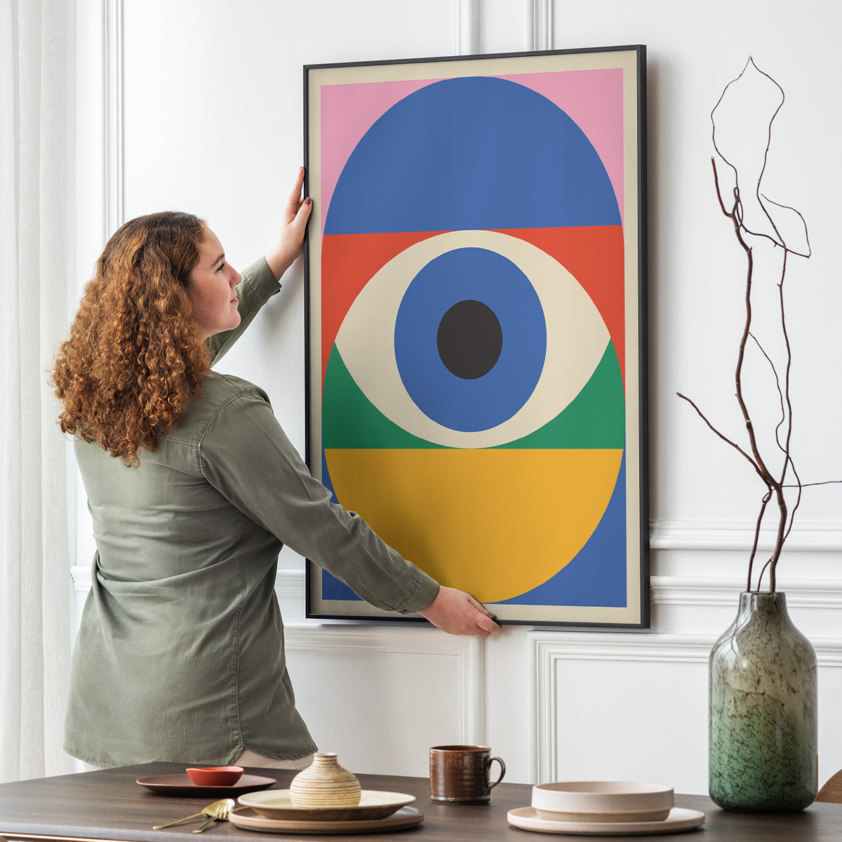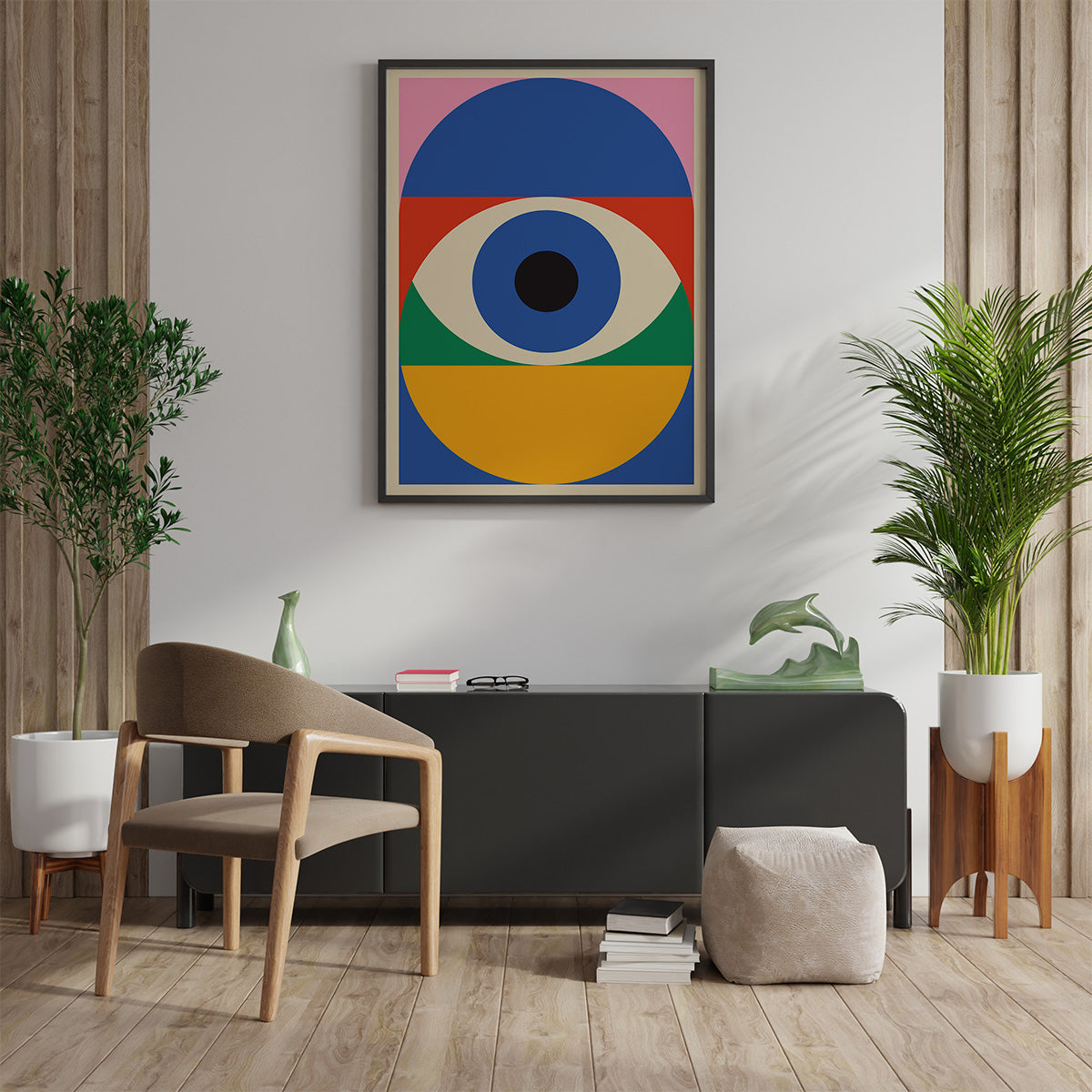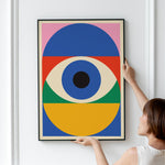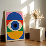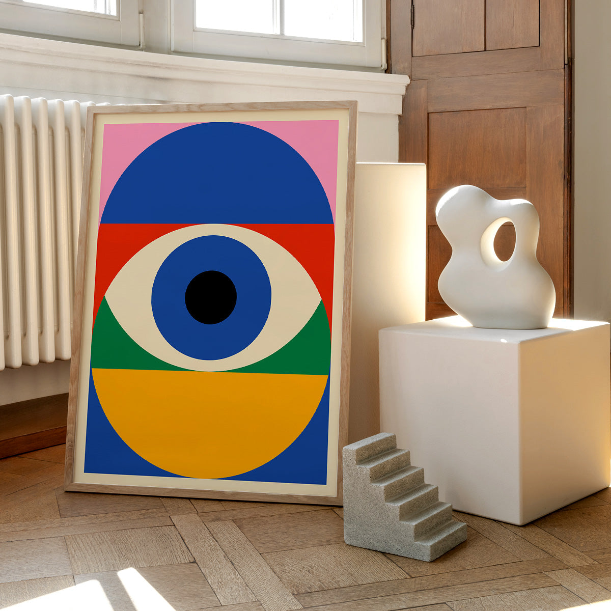 Bauhaus Plakat Pink 008-plakaten primære blå farve, kombineret med gul, blå, pink og grøn giver en perfekt kontrast og et fint farvespil, der kan give liv til enhver kedelig væg. Kombineret med vores matte 230g FSC-certificerede kvalitetpapir får du en smuk plakat, som kan pryde dit hjem og forbliver relevant i mange år. Det er netop hvad Bauhaus bevægelsen står for. Køb din Bauhaus plakat med fri fragt og gratis indramning i dag. Klik på linket for at læse mere om Bauhaus og se flere Bauhaus plakater