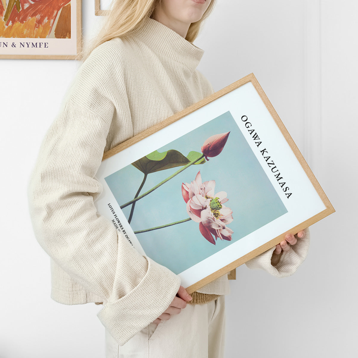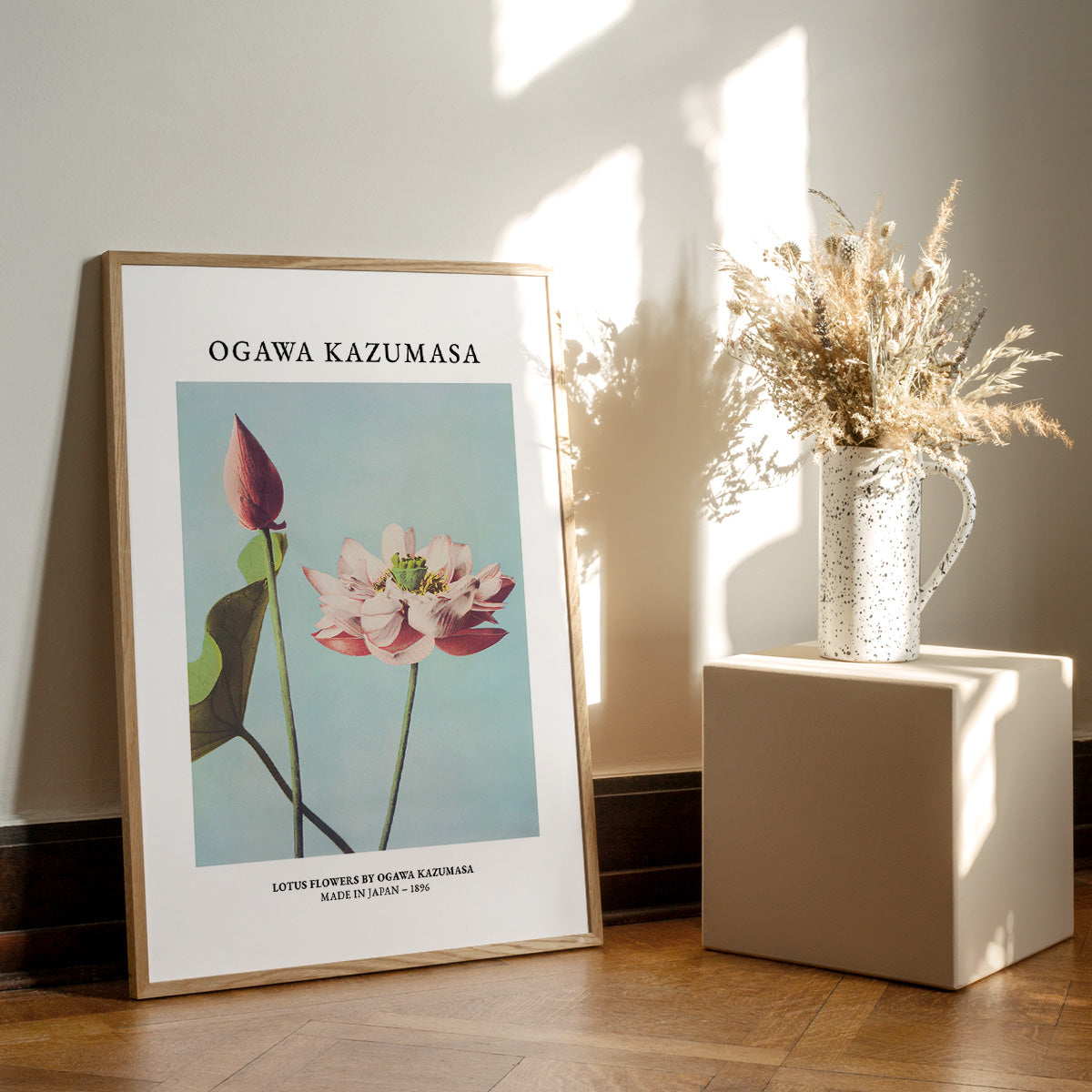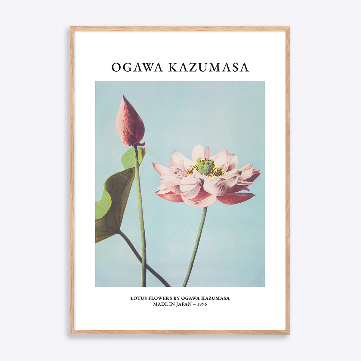 Dyk ned i en verden af skønhed og elegance med vores "Ogawa Kazumasa Lotus Flower" plakat. En del af vores kollektion af japanske plakater. Plakaten er den flotte 'Lotus Flower' plakat af japanske Ogawa Kazumasa, som lavede smukke værker og fotografier da han levede mellem 1860 - 1929.
