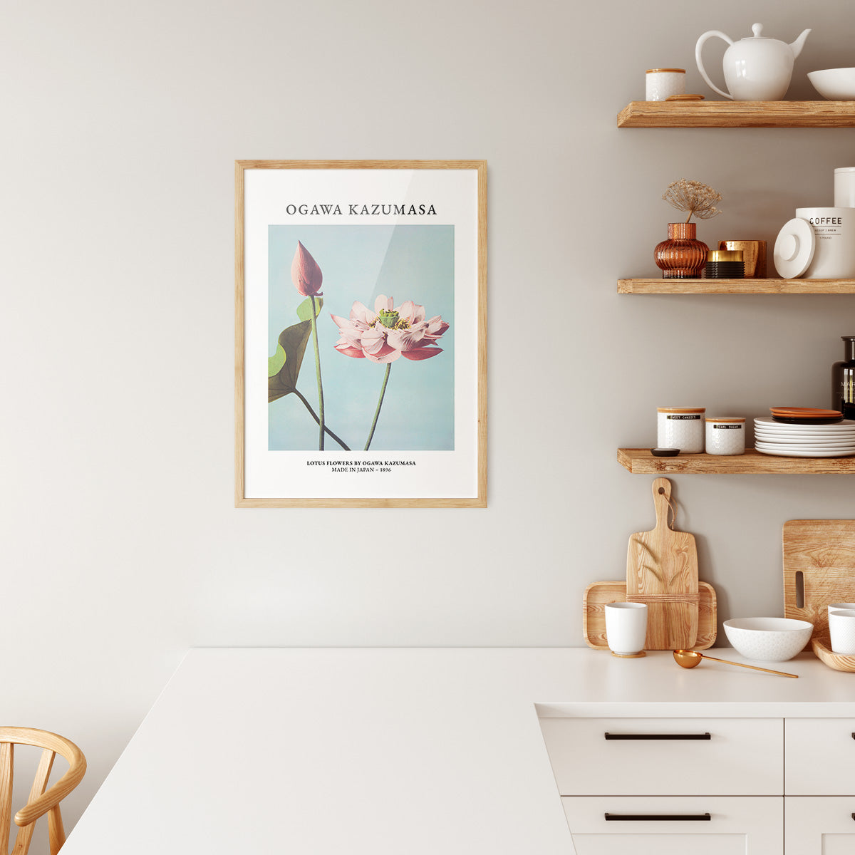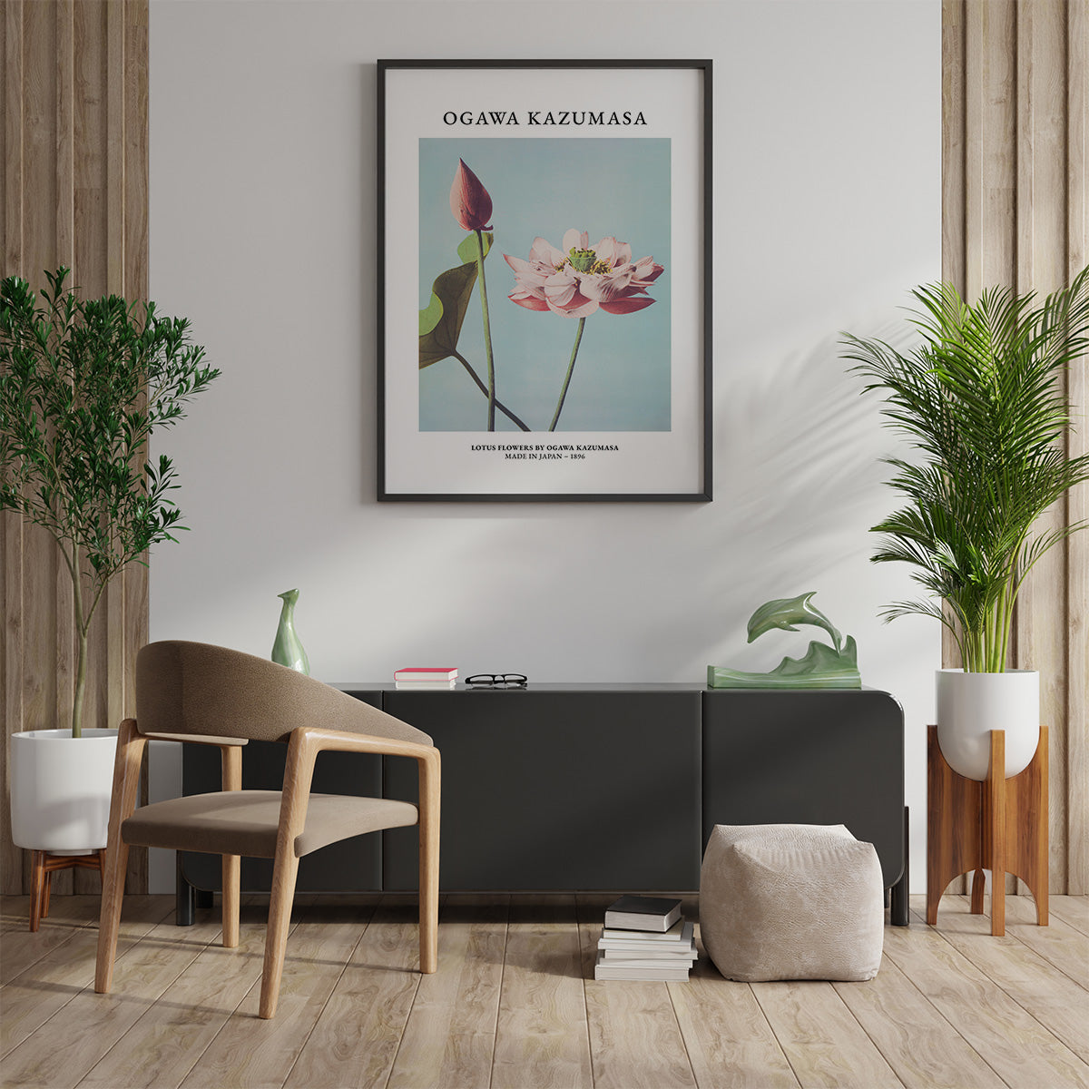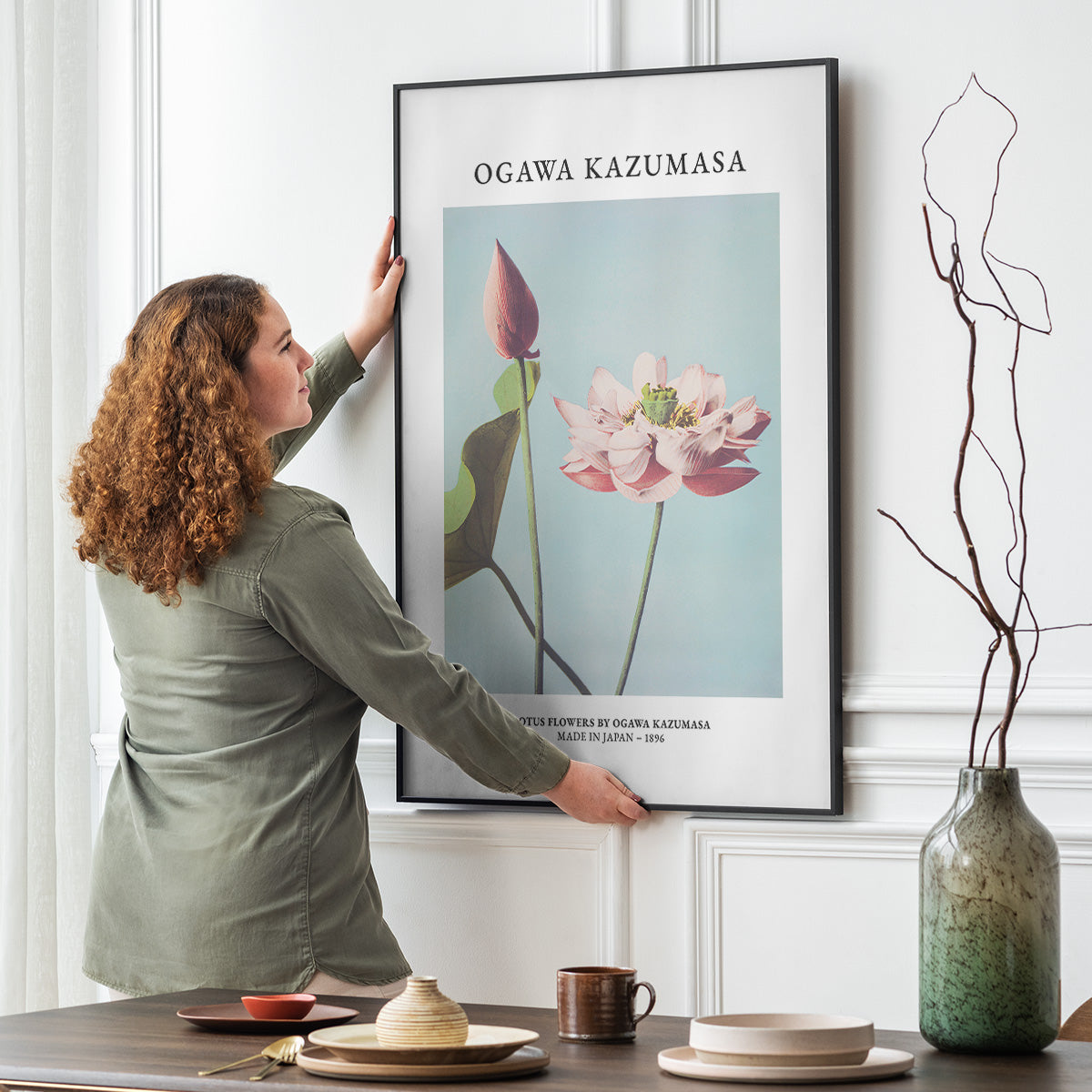 Dyk ned i en verden af skønhed og elegance med vores "Ogawa Kazumasa Lotus Flower" plakat. En del af vores kollektion af japanske plakater. Plakaten er den flotte 'Lotus Flower' plakat af japanske Ogawa Kazumasa, som lavede smukke værker og fotografier da han levede mellem 1860 - 1929.