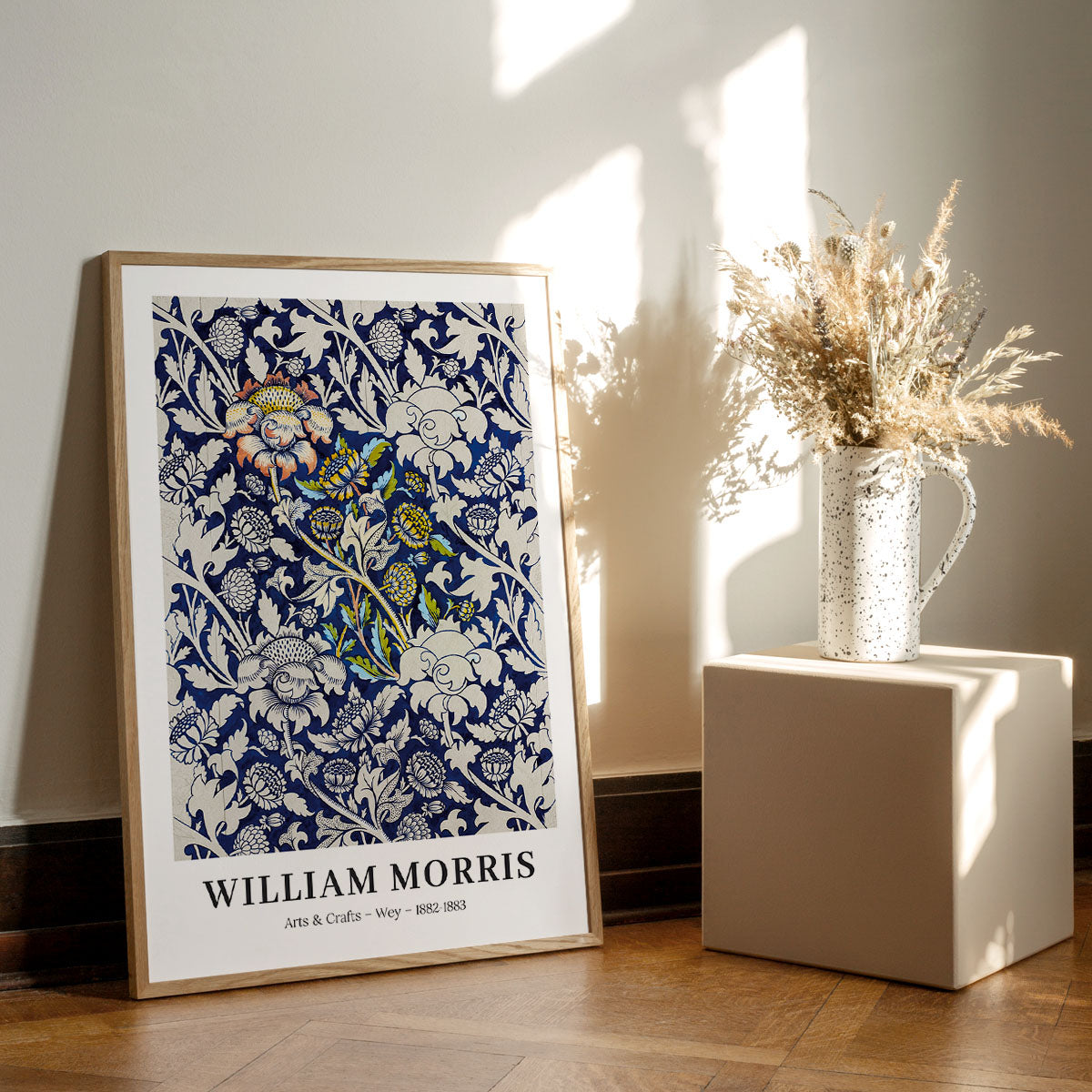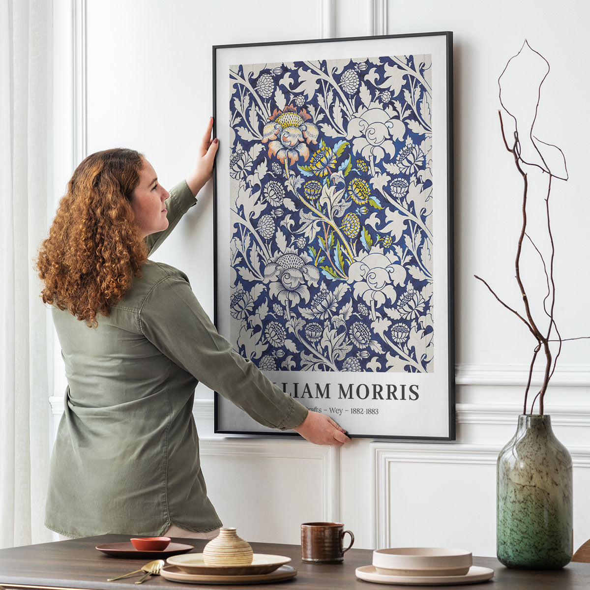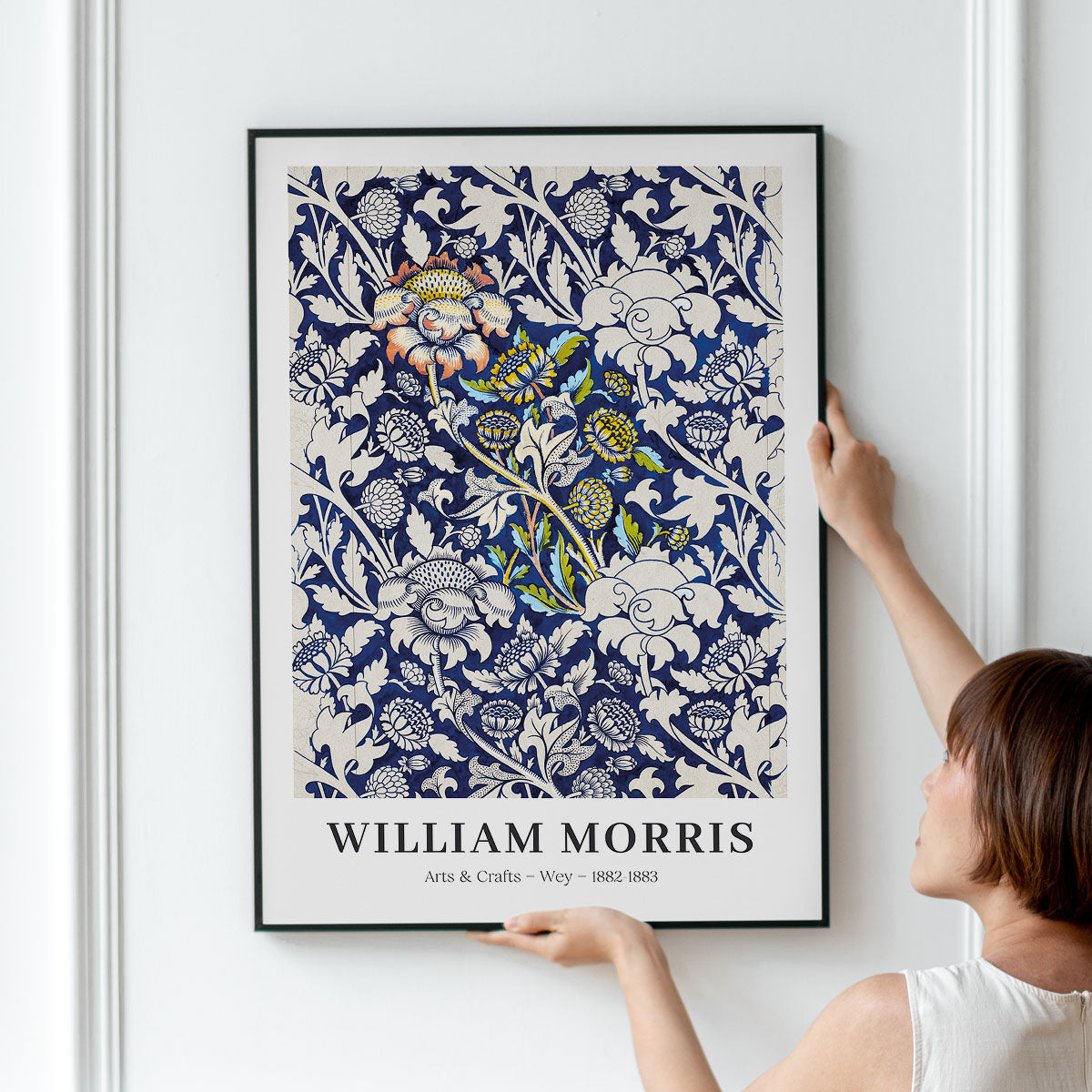 Motivet til Wey plakaten er oprindeligt designet af den engelske kunstner William Morris. Willian Morris er en af grundlæggerne bag Crafts and Arts, som blandt andet blev brugt på tapeter og stoffer. Morris døde i 1896, men hans stil lever videre i bedste velgående, bl.a. her hos Poster Society, hvor du kan købe 'Wey' designet på 230 gram FSC certificeret kvalitetspapir med mat finish. Læs mere om William Morris og se flere William Morris plakater og posters her