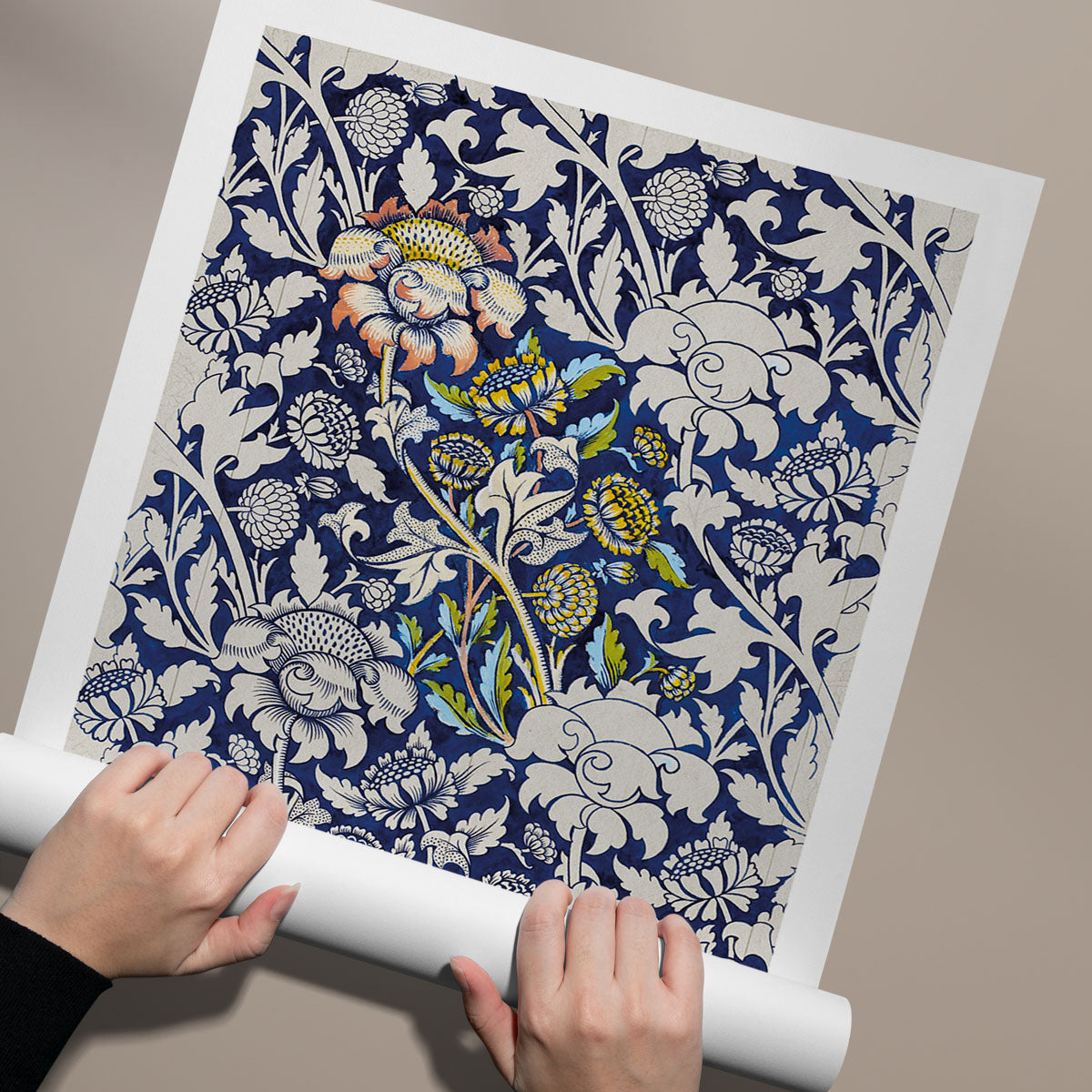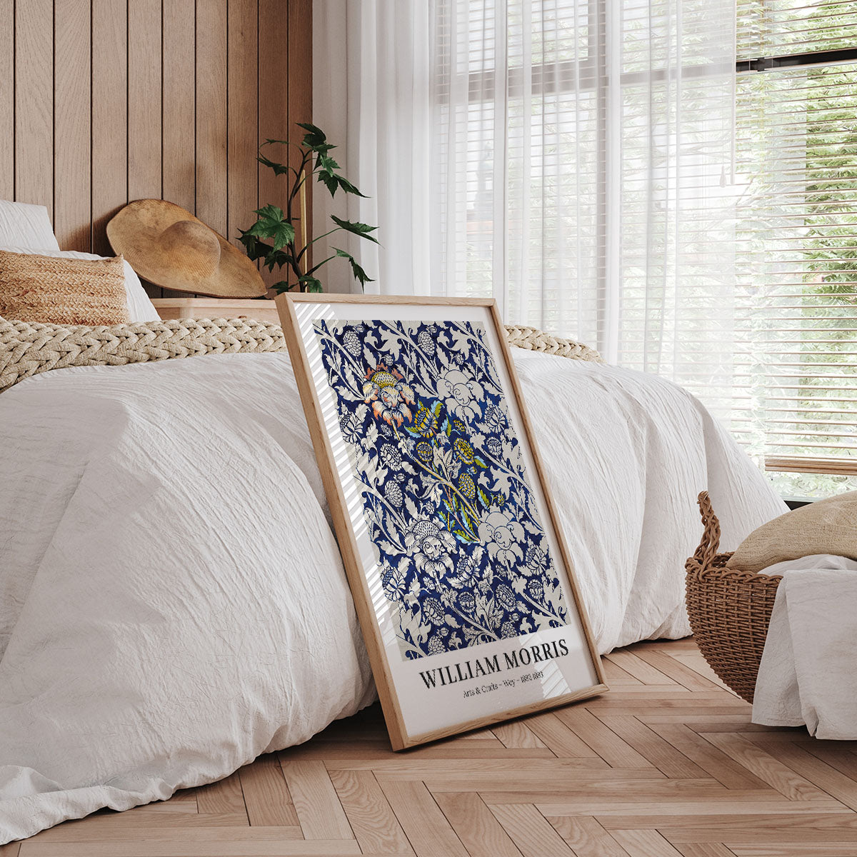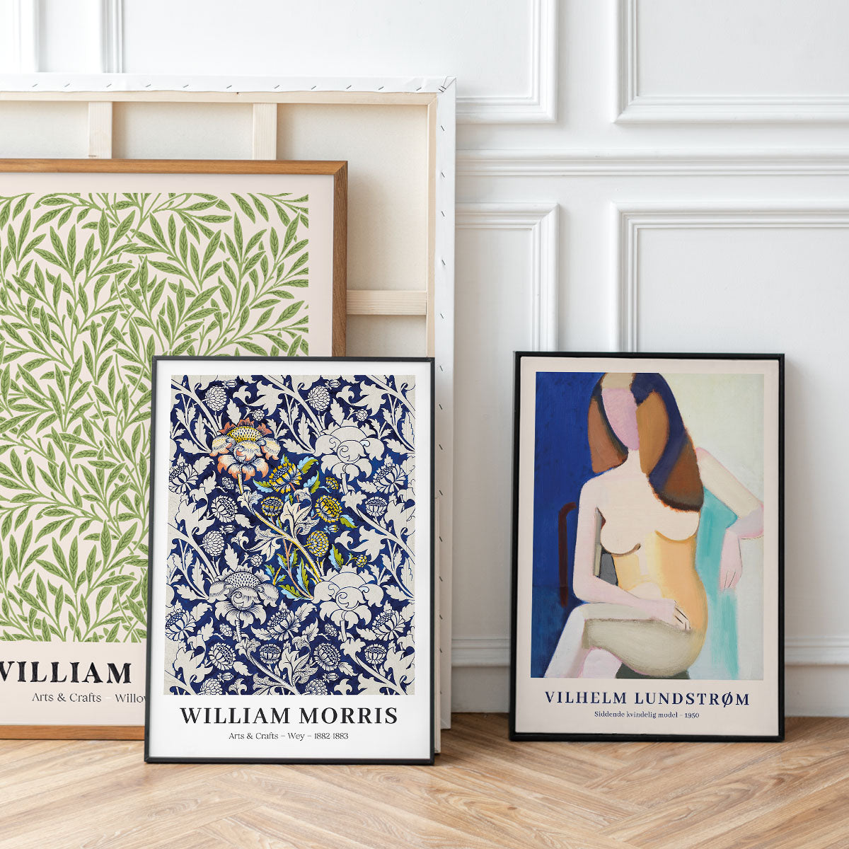 Motivet til Wey plakaten er oprindeligt designet af den engelske kunstner William Morris. Willian Morris er en af grundlæggerne bag Crafts and Arts, som blandt andet blev brugt på tapeter og stoffer. Morris døde i 1896, men hans stil lever videre i bedste velgående, bl.a. her hos Poster Society, hvor du kan købe 'Wey' designet på 230 gram FSC certificeret kvalitetspapir med mat finish. Læs mere om William Morris og se flere William Morris plakater og posters her