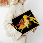 Det dynamiske motiv, den sorte baggrund og de varme gule og røde nuancer gør den til en sand klassiker – og en hyldest til italiensk livsglæde. Perfekt til køkken, bar, vinrum – eller hvor end der mangler lidt boblende energi.