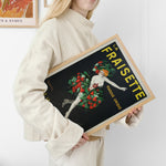 Leonetto Cappiello gør det igen – denne gang med en dansende kvinde klædt i jordbær og blade, der smilende præsenterer en flaske La Fraisette. Plakaten fra 1909 er et fantastisk eksempel på Cappiellos legesyge og farvestærke stil, hvor han kombinerer humor, elegance og reklame på sin helt egen måde.