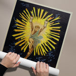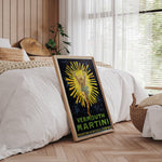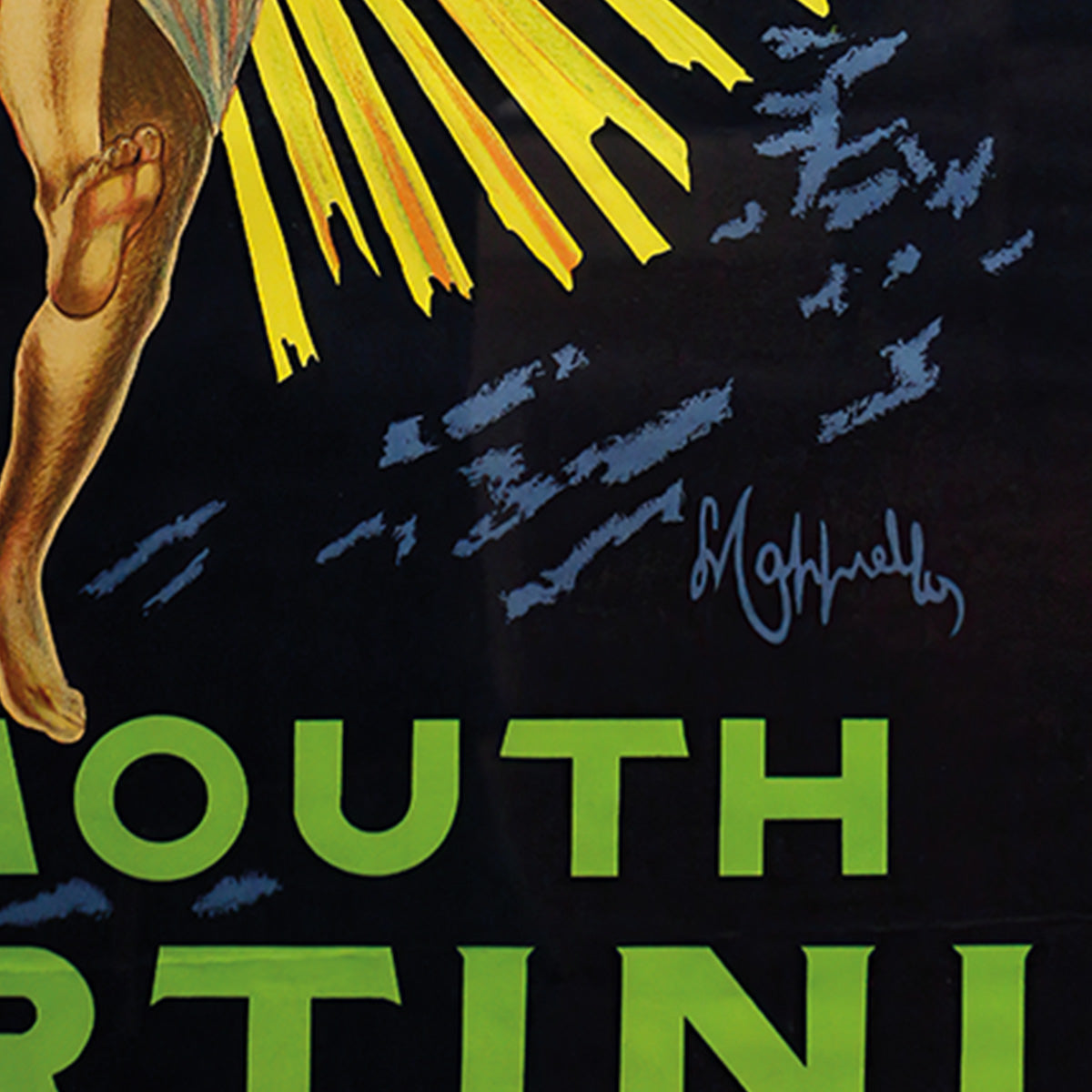 Som en lysende stjerne springer figuren frem med to flasker Martini hævet i triumf. Denne dramatiske plakat fra 1920 er skabt af Leonetto Cappiello og er et fantastisk eksempel på hans signaturstil: sort baggrund, klare farver og figurer, der nærmest springer ud af papiret.